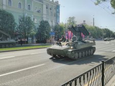 На торжественных мероприятиях в честь Дня Победы, прошедших сегодня, 9 мая, в столице ДНР Донецке, неожиданным образом зафиксировали официальную «гостью» от Киева. Во время парада в честь праздника Победы Великой Отечественной Войне на улицу, по которой шла колонна парадной техники, выскочила собака с громким лаем и начала активно пытаться напрыгивать на технику.