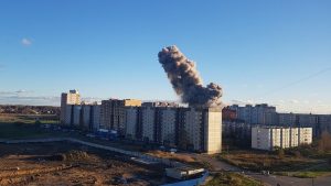 Отмечается, что в результате технологического взрыва здание площадью 7,5 тысячи квадратных метров обрушилось полностью. После взрыва загорелись три легковые машины.