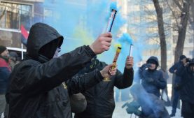 По его словам, мероприятие приурочено к годовщине «нападения» России на Украину. В ходе митинга радикалы скандировали «Путин, убирайся вон» и пели государственный гимн.