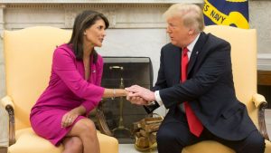 До своего назначения послом при ООН в январе 2017 года Никки Хейли, американка индийского происхождения, занимала пост губернатора штата Южная Каролина, на котором запомнилась снижением уровня безработицы в штате до рекордно низкого, а также нашумевшим распоряжением убрать флаг Конфедерации со здания Капитолия после массовой стрельбы в Чарльстоне.