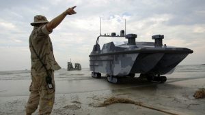 Беспилотный малозаметный десантный катер-амфибия Marine Lizard — это тримаран длиной 12 метров, приводимый в ход дизельным двигателем. Максимальная скорость машины составляет 50 узлов по воде (92,6 км/ч) и 20 км/ч по суше, с помощью четырёх выдвигаемых гусеничных траков.