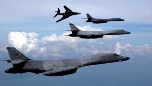 «Несколько B-1B Lancer в сопровождении истребителей F-22 Raptor провели маневры с учебным бомбометанием, продемонстрировав способность и решимость союзников дать жесткий ответ на северокорейские ракетные и ядерные провокации», — сообщили в южнокорейском Комитете начальников штабов.