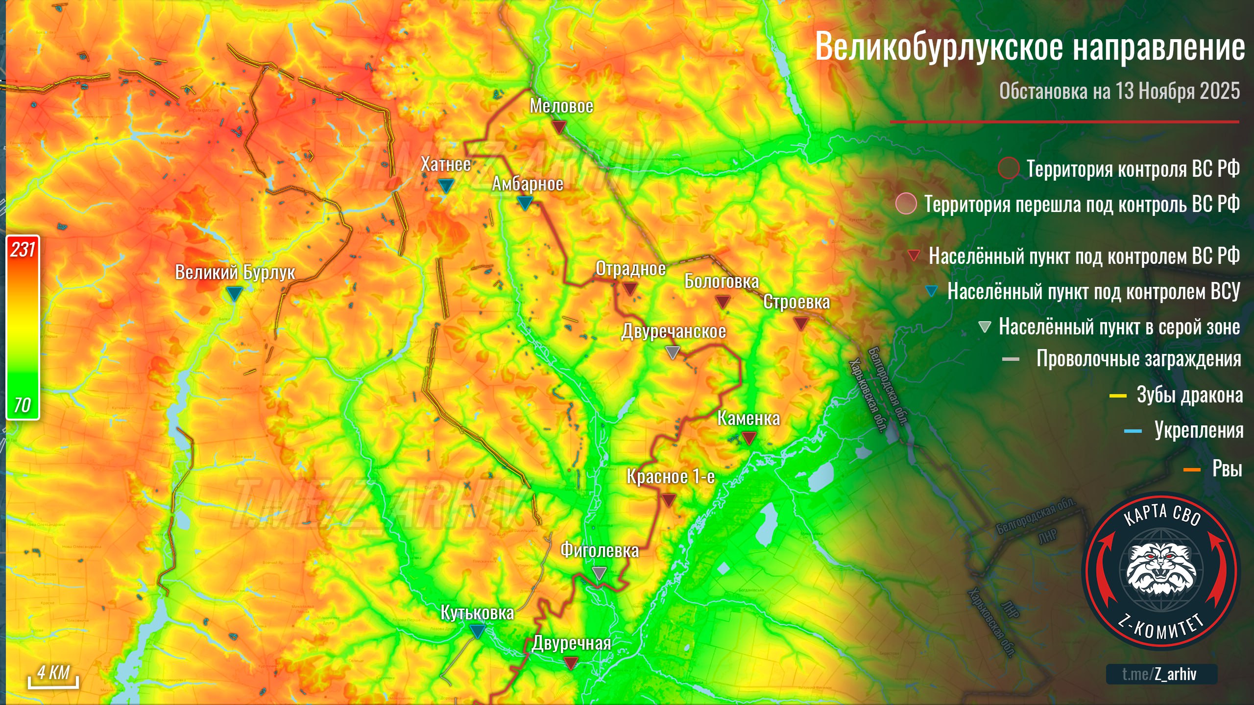 Продвижение российских военных к Двуречанскому в своём обновлении отмечал 13 ноября 2025 года канал «Z комитет + карта СВО». Населённый пункт находится на возвышенности, а подходы к нему были перекрыты возведёнными противником укреплениями.