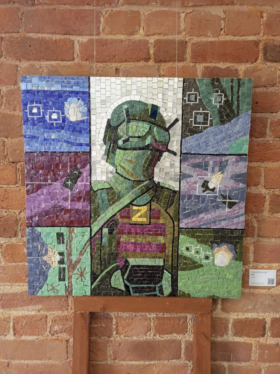 — Работа Сергея Вэ «Оператор БПЛА» выполнена в мозаике — самом долговечном материале. Почему для образа «цифровой войны» был выбран такой древний медиум?