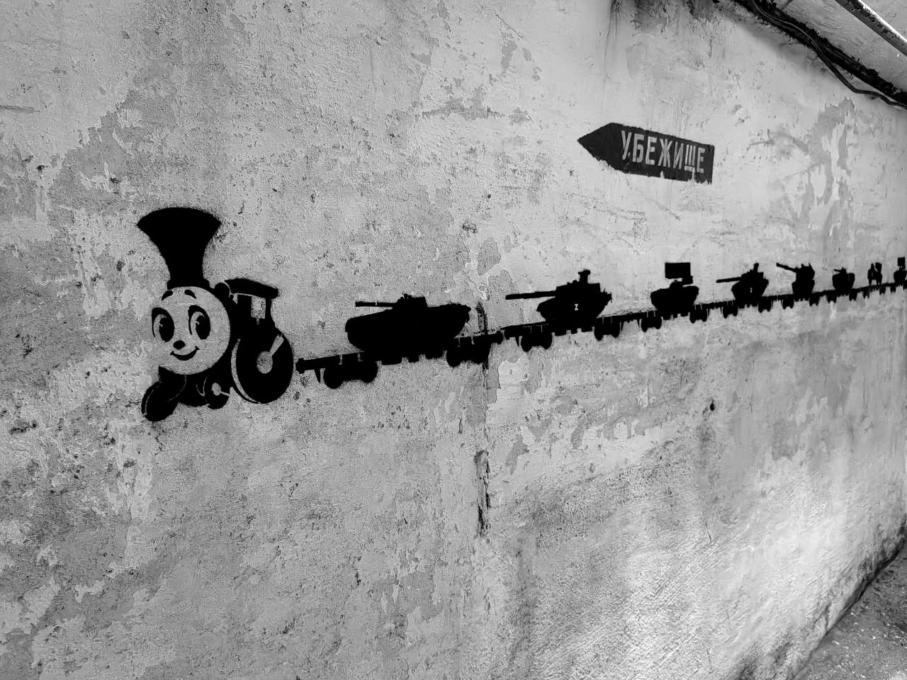 — У автора, Павла Михайлова, был старый вариант, где Паровозик из Ромашково тянул цистерны нефти. Но специально для нашей выставки Павел заменил их на военную технику. Помните – в начале СВО было много съёмок с составами? Наверно, Павел хотел, чтобы снабжение фронта шло без перебоев.