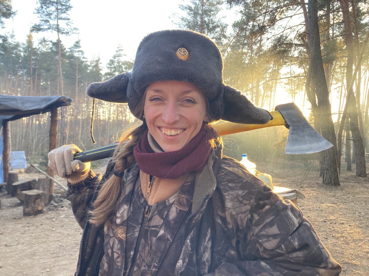 — Эту кличку я получила в белгородских лесах. Осень 2022-го года. Мы приехали туда вместе с мужем на заготовку бревен и дров. Гражданская профессия мужа – художник по свету в кино. Заготовкой занималась группа «Брёвна 31», как в шутку себя называли — «Бобряндия». Тогда делянки были выделены администрацией районов, а мы были первыми волонтёрами, которые приехали из Петербурга. В основном ребята работали из Белгородской и близлежащих областей – Воронежской, Курской, из Москвы очень много ребят приезжало. И вот все были «бобрами», а я-то девочка! Во мне росту 160 сантиметров и весу — 42 килограмма. Брёвна мне носить было тяжело. Я грузила дрова – в КАМАЗы, «Уралы«. Это было всё так интересно и волнительно – ведь наша помощь передавалась лично бойцам на фронт!