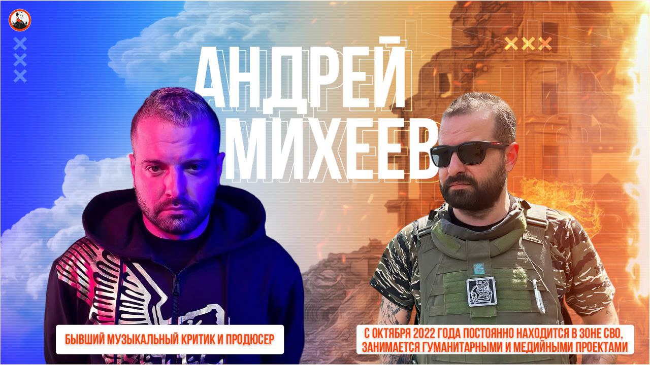 Интервью с Андреем Михеевым, который в свое время был главным редактором телеканала LifeNews, главным продюсером «видеодирекции» холдинга Rambler&Co, генеральным директором «Калашников Media», директором по цифровым коммуникациям всей Группы Компаний «Калашников», главным редактором WarGonzo. В данный момент является продюсером федерального музыкального проекта «Рэп взвод».