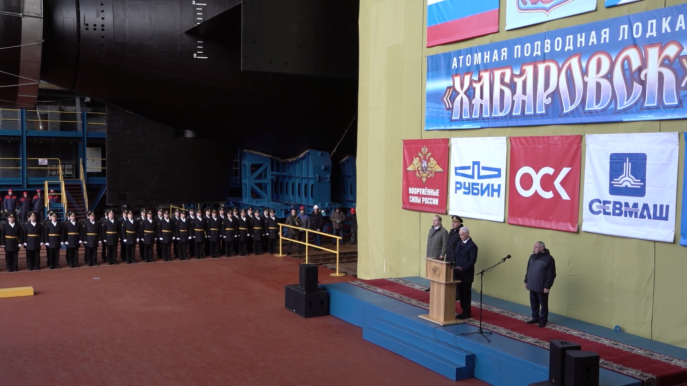На северодвинском судостроительном предприятии ОСК «Севмаш» состоялась церемония вывода из эллинга атомной подводной лодки «Хабаровск», построенной для ВМФ России.