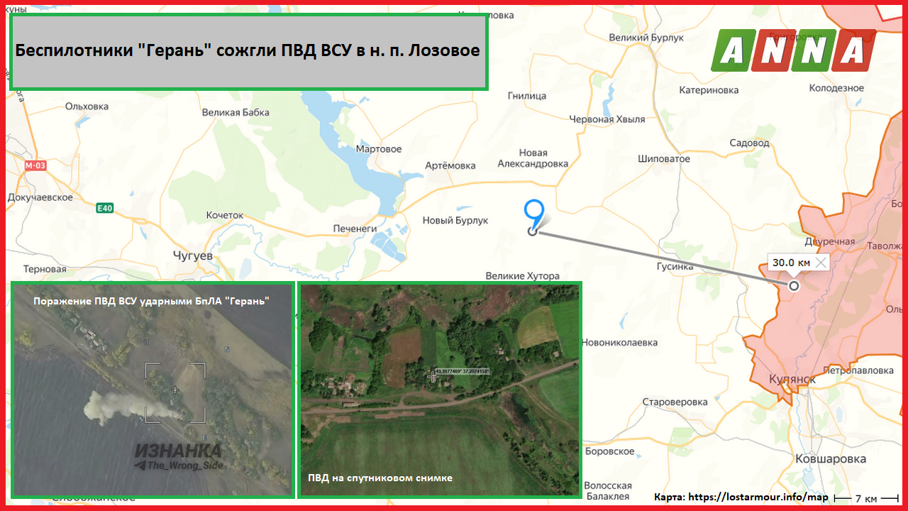 Ударные беспилотники «Герань» поразили ПВД ВСУ в н.п. Лозовое (с) «Изнанка»
