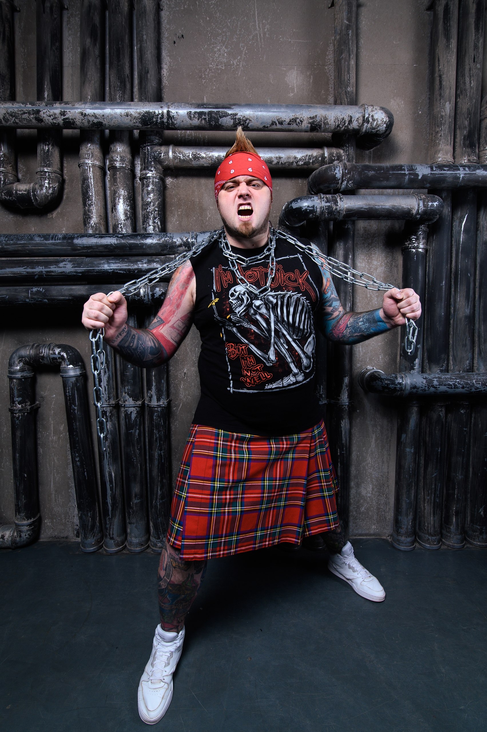 — Это, в первую очередь, удобный, а во вторую очередь — крутой образ. Я крупный парень, почти два метра ростом и не разу не стройняшка, представьте сколько потов с меня сходит после стандартного сорокаминутного фестивального сета, а если это двухчасовой сольный концерт? В штанах 100% будет болото, но килт великолепно решает эту проблему. Ну и девочкам нравится, чего уж скромничать.