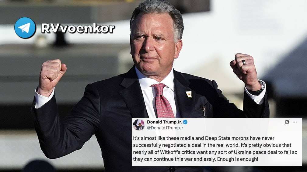 «Совершенно очевидно, что почти все критики Уиткоффа хотят провала любого мирного соглашения с Украиной», – значится в сообщении Трампа-младшего