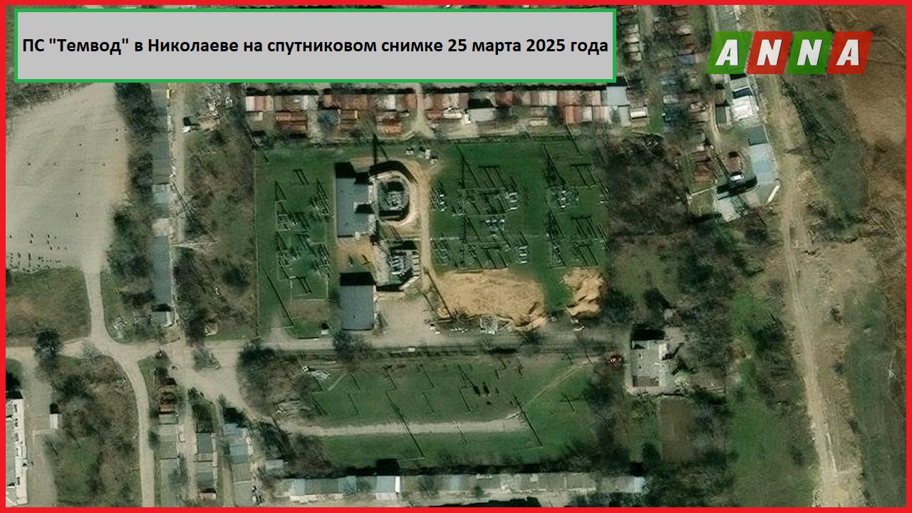 Возведенные защитные сооружения на ПС «Темвод» в Николаеве на спутниковом снимке 25 марта 2025 (с) ANNA-News / Maxar