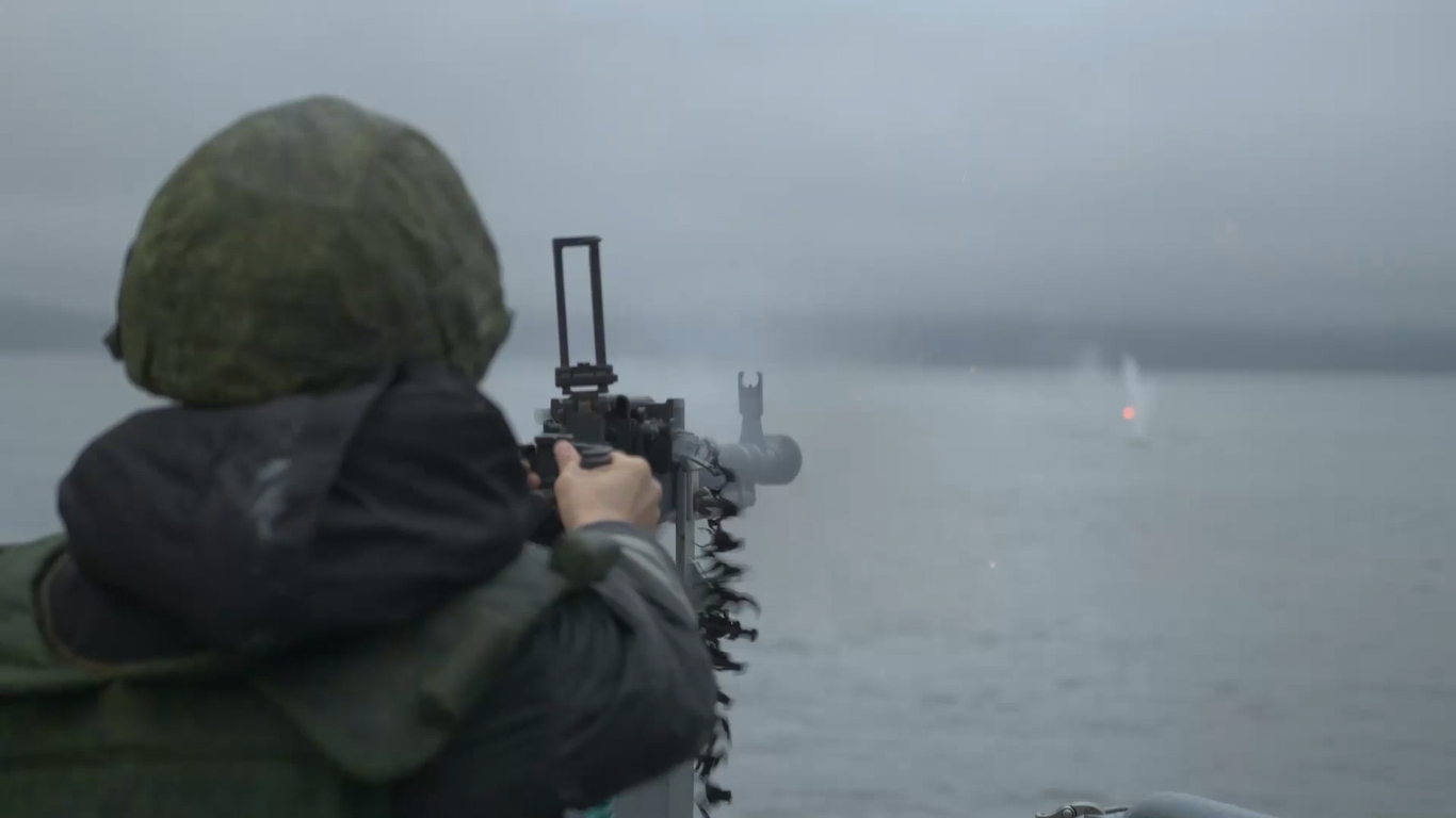На кадрах опубликованного видео показана стрельба по имитаторам безэкипажных катеров из классических крупнокалиберных 12,7-мм пулемётов ДШК, а также современных пулемётов «Корд».