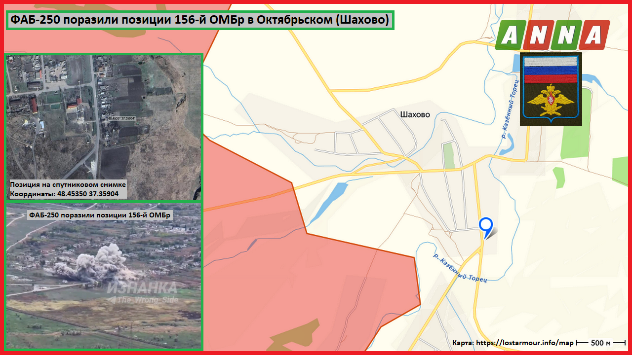 Российские военные лётчики поразили позиции 156-й ОМБр ВСУ в Октябрьском (Шахово) (с) «Изнанка»