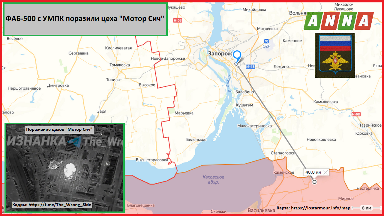 Согласно информации мониторингового канала «Хроники Гераней», удар с применением ФАБ с УМПК наносился по объекту в Запорожье около полуночи. По всей видимости, именно тогда, в тёмное время суток, были поражены цеха предприятия «Мотор Сич».