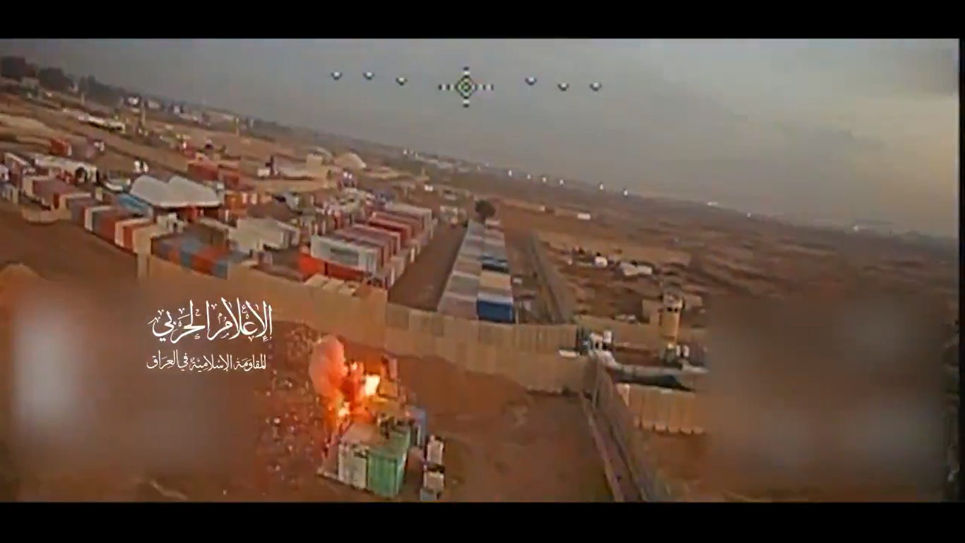 Американская военная база в Ираке, известная под названием «Лагерь Виктория», вновь попала под удар FPV-дронов союзных Ирану сил. Новые кадры использования беспилотников были опубликованы в среду, 25 марта, Военными медиа Исламского сопротивления в Ираке.