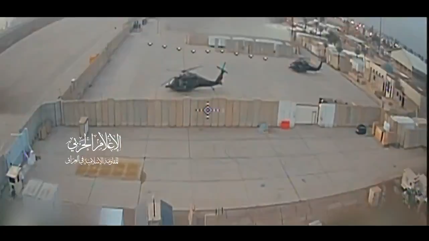 Кадры атаки FPV-дронов на РЛС и вертолёт на американской военной базе (с) Кадры Исламского сопротивления в Ираке