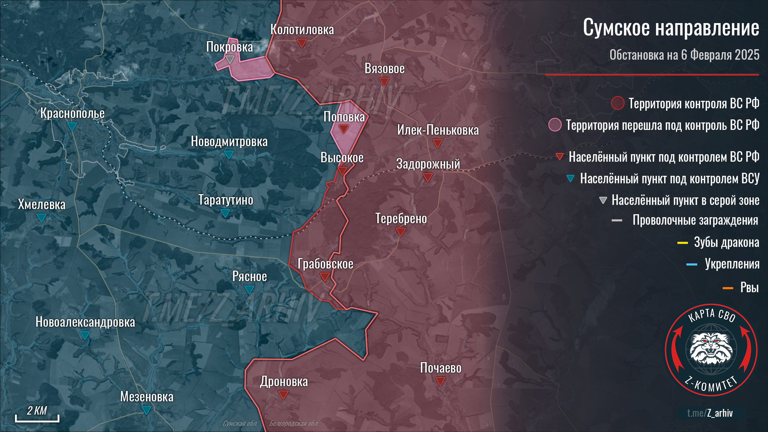 Как сообщает Telegram-канал «Z комитет + карта СВО», российские военные, освободив Поповку, ведут бои за освобождение населённого пункта Покупка, расширяя на север контролируемый участок приграничья Сумской области.
