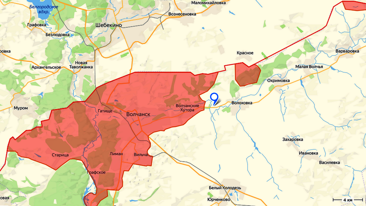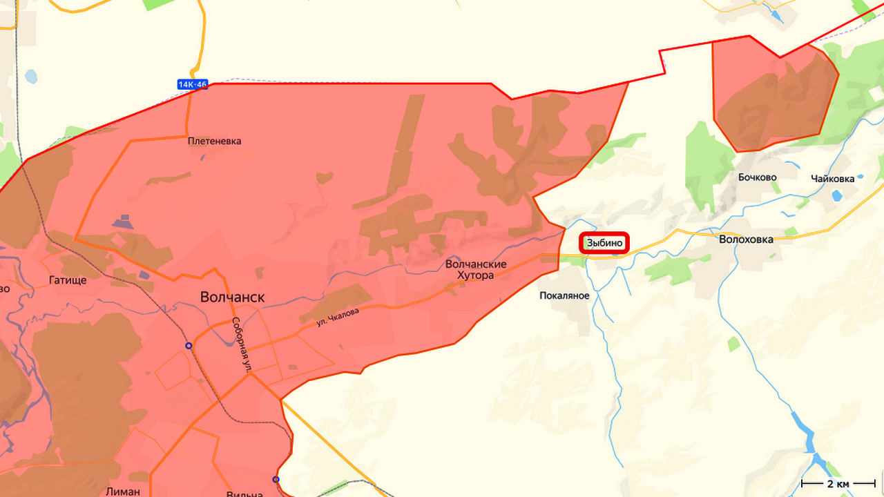 Российские военные уже ведут бои в соседних населённых пунктах, сообщает «Северный ветер». Вероятно, имеются в виду Покаляное и Волоховка на южном берегу реки Волчьей, а также Бочково на северном берегу этой реки к востоку от освобождённого Зыбино.