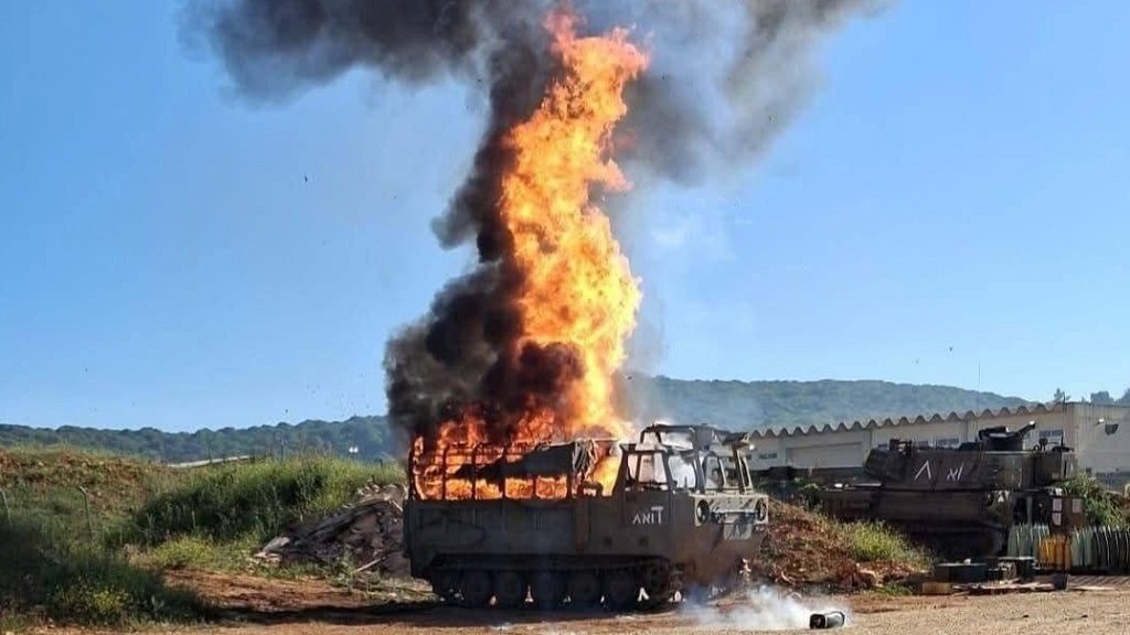 Дрон-камикадзе «Хезболлы» ударил по транспортеру M548, который использовался для перевозки боеприпасов и личного состава. В результате точного попадания в БТРе начали взрываться находящиеся в нем снаряды. Израильские СМИ сообщают о ранении 12 военнослужащих из-за этого удара «Хезболлы».
