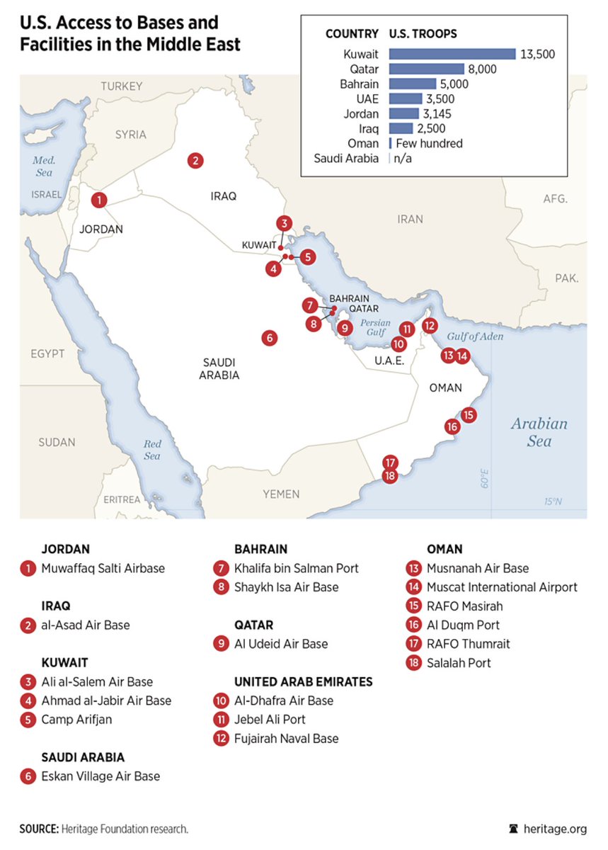 Предоставление территорий под американские базы (около 20 объектов в регионе) делает эти страны законными целями для иранских контрмер: