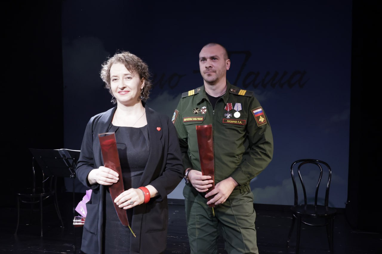 — Рассказ «Радио-Паша» прочитала режиссер театра «Ковчег» Людмила Манонина-Петрович и прониклась. Вскоре она записала аудио-версию рассказа, я прислала его ребятам в госпиталь, и вскоре узнала, что рассказ разлетелся по стране – и вот его уже слушают в госпиталях Белгорода и Донецка. А Людмила Николаевна уже начала репетиции. Вскоре прошли первые читки, на которых присутствовал сам «Радио-Паша» — Павел Лазарев из Таганрога, награжденный Орденом Мужества и Медалью «За Отвагу», и его сосед по палате, Дмитрий Терешенков, руководитель Союза Добровольцев Донбасса, а также другие воины из госпиталя. Прием был такой горячий, что это дало импульс режиссеру и артистам.
