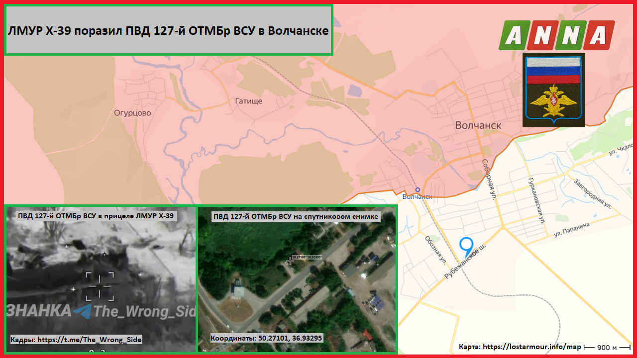 Лётчики ВКС России с помощью ЛМУР поразили ПВД 127-й ОТМБр ВСУ в Волчанске (с) «Изнанка»
