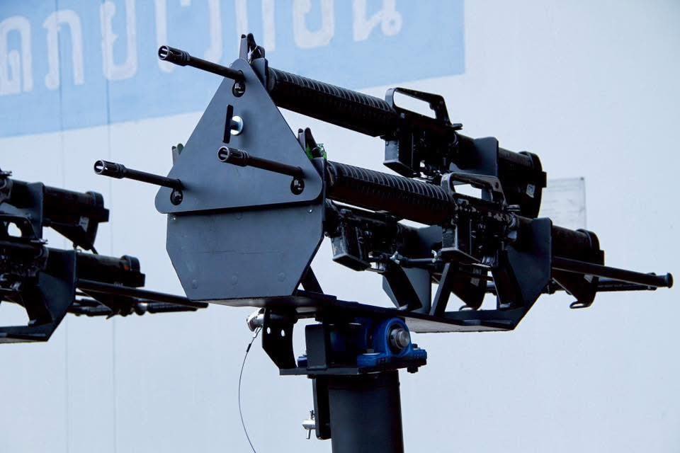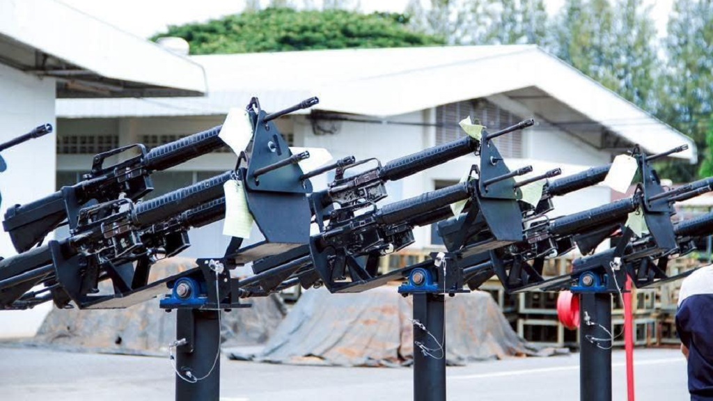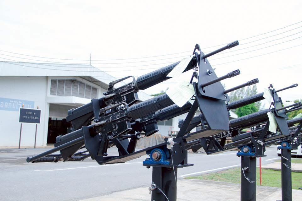 Армия Таиланда разрабатывает возможные способы борьбы с малыми дронами. В качестве одной из возможностей стало создание станков для спарки нескольких винтовок М-16.