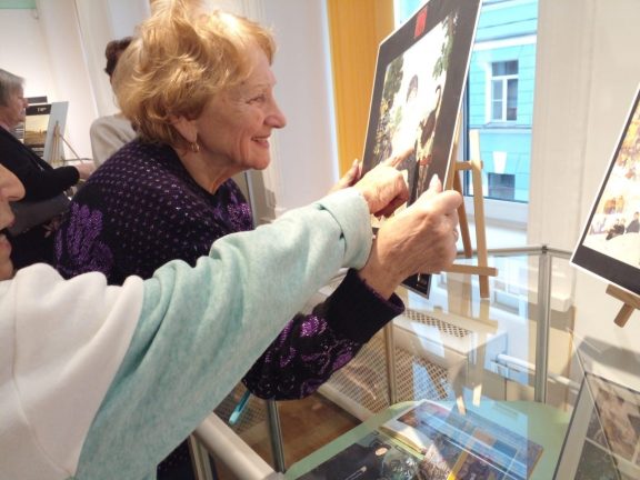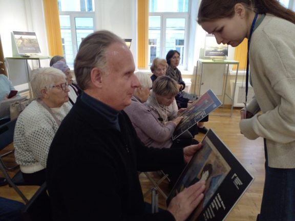 Также мы объединяем два наших проекта и вот уже в две страны — Узбекистан и Азербайджан, и город Пермь, мы приезжали не только с художником, но и с блокадниками, членами нашей организации, которые тоже пишут картины кончиками пальцев. Эти поездки были наполнены патриотическими встречами. Наши участницы, возраст которых около 90 лет, с большим вдохновением рассказывают о периоде своего детства в блокадном Ленинграде, о жизни своих семей и других жителей нашего города. Мы готовим «говорящие» фотопрезентации и тогда и дети, и взрослые зрители полностью погружается в рассказ о сложном военном периоде нашей страны.