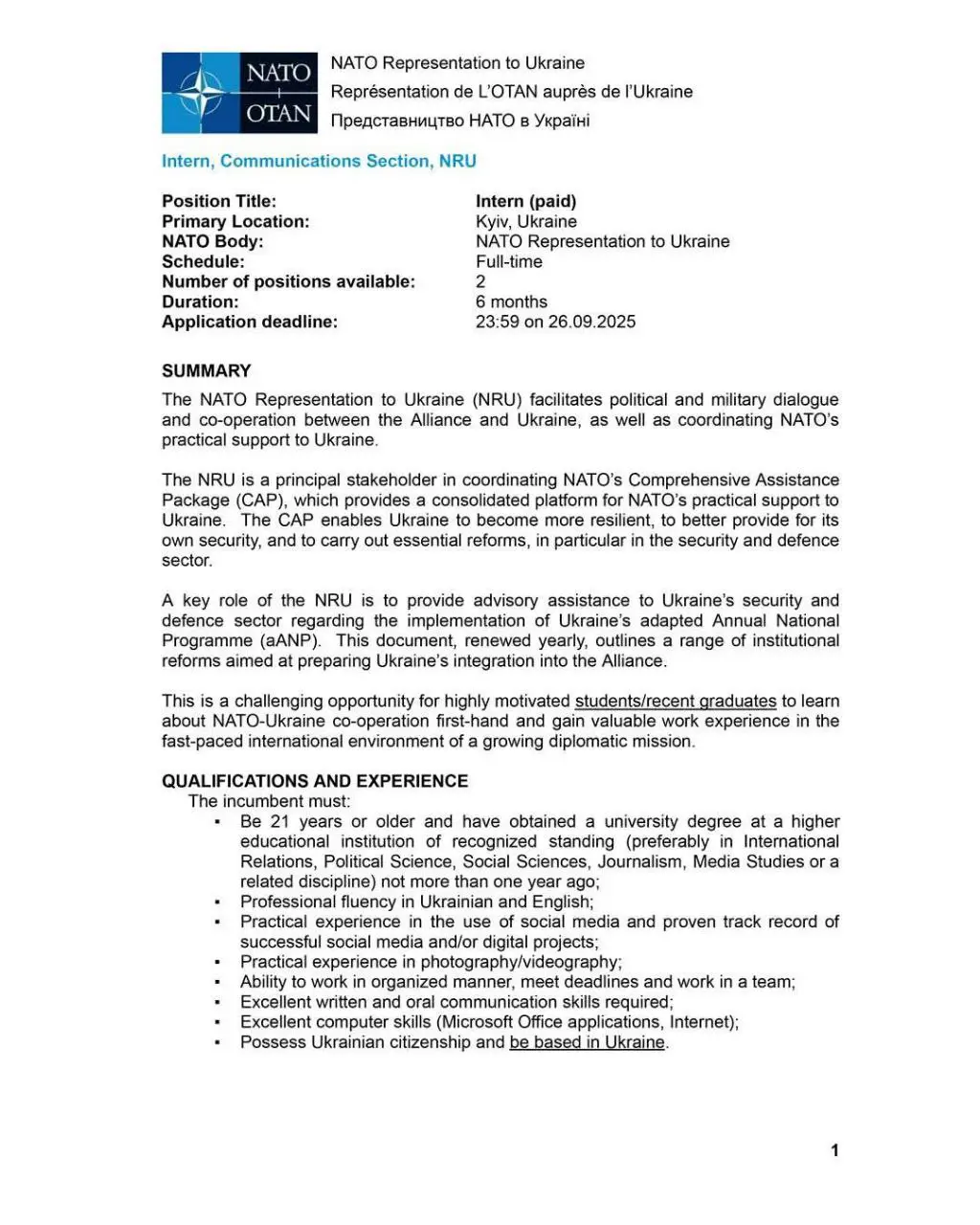 В приложенных к постам скринах говорится, что представительству альянса требуются два молодых человека для работы в соцсетях. Основным моментом является их украинское гражданство и проживание на территории страны.