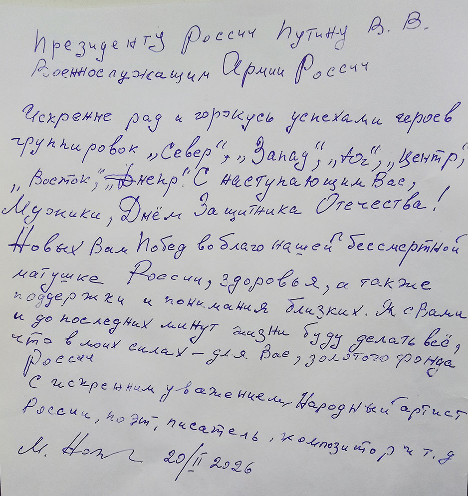 Народный артист России НОЖКИН Михаил Иванович очень много внимания уделяет вопросам содействия Армии России. В то же время направляя обращения в различные инстанции с целью правового обеспечения участников СВО, мы столкнулись со следующим.
