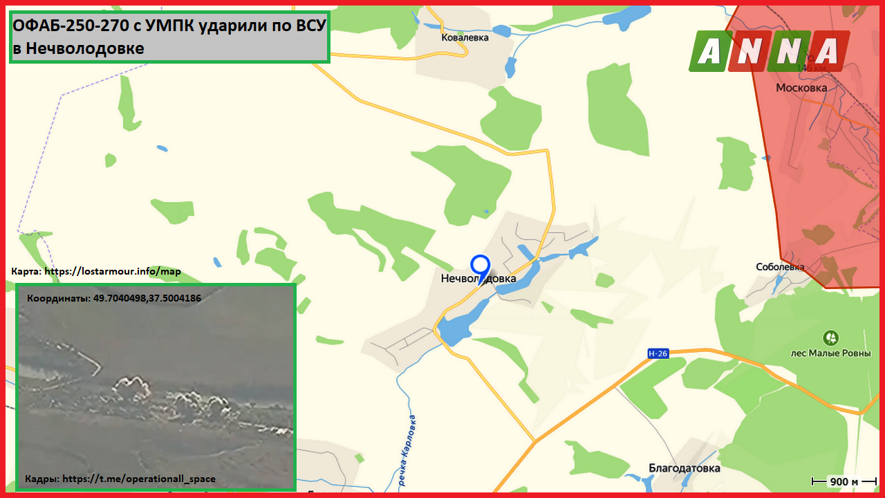 ВКС России с помощью ОФАБ-250-270 с УМПК ударили по ВСУ в н. п. Нечволодовка (с) «Оперативный простор»