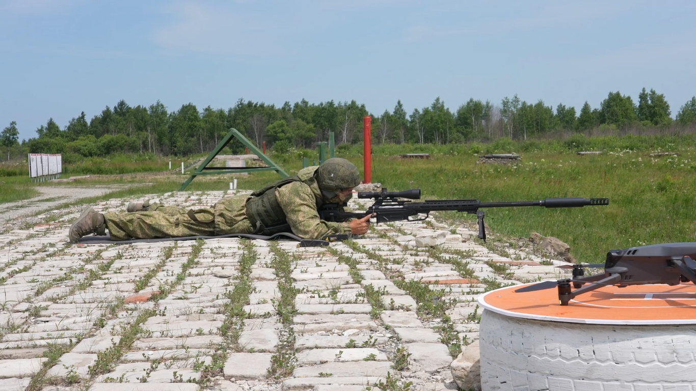 Снайперы Восточного военного округа ВС РФ осваивают новые крупнокалиберные дальнобойные снайперские винтовки ORSIS 50 BMG на полигоне в Хабаровском крае.