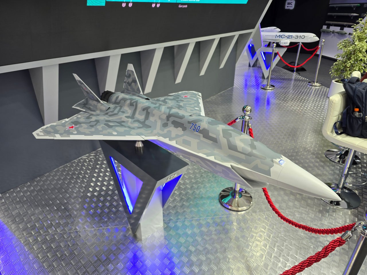 На выставке в Дубае была представлена модель беспилотной версии Су-75 Checkmate с внесёнными в конструкцию изменениями, включая крыло и заднюю часть планера самолёта.