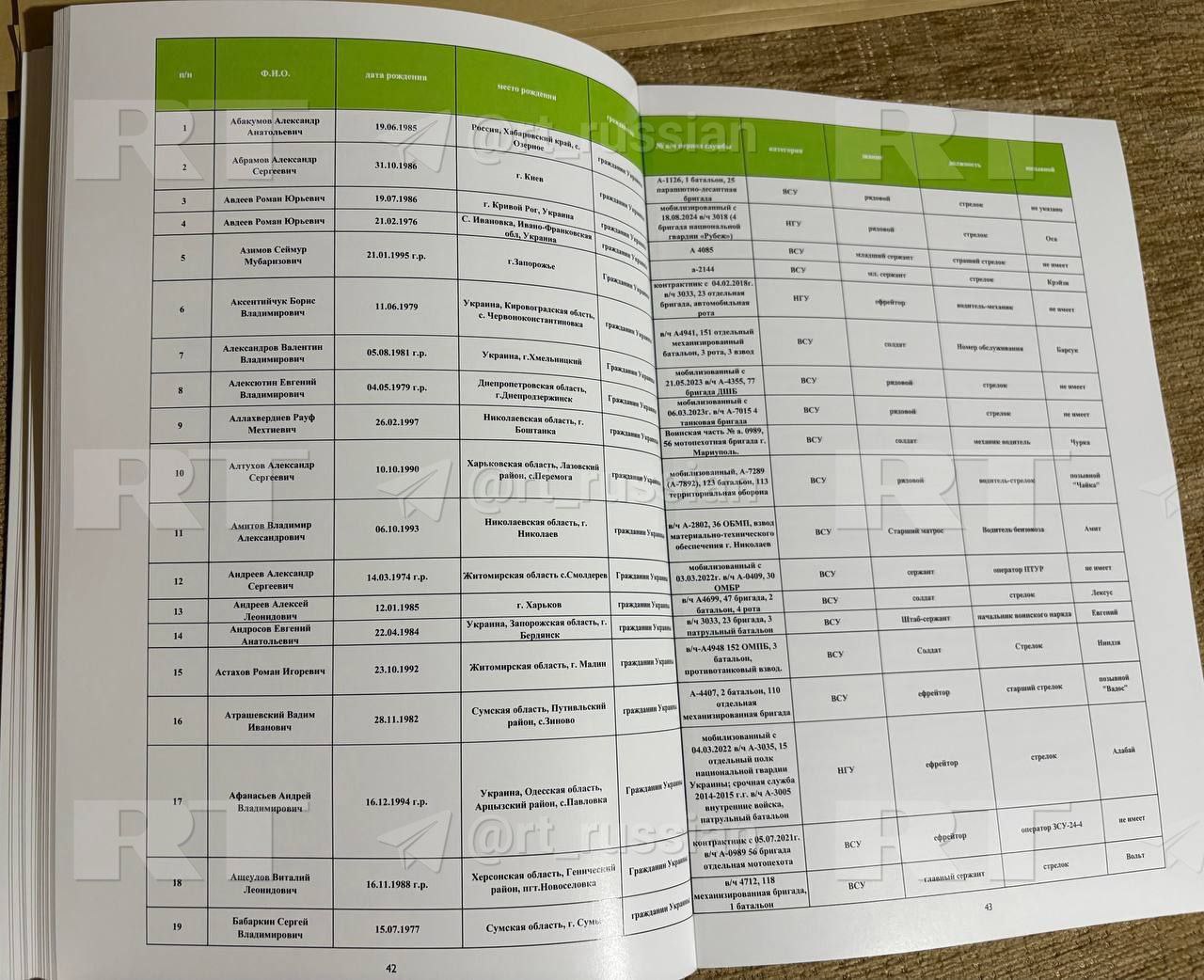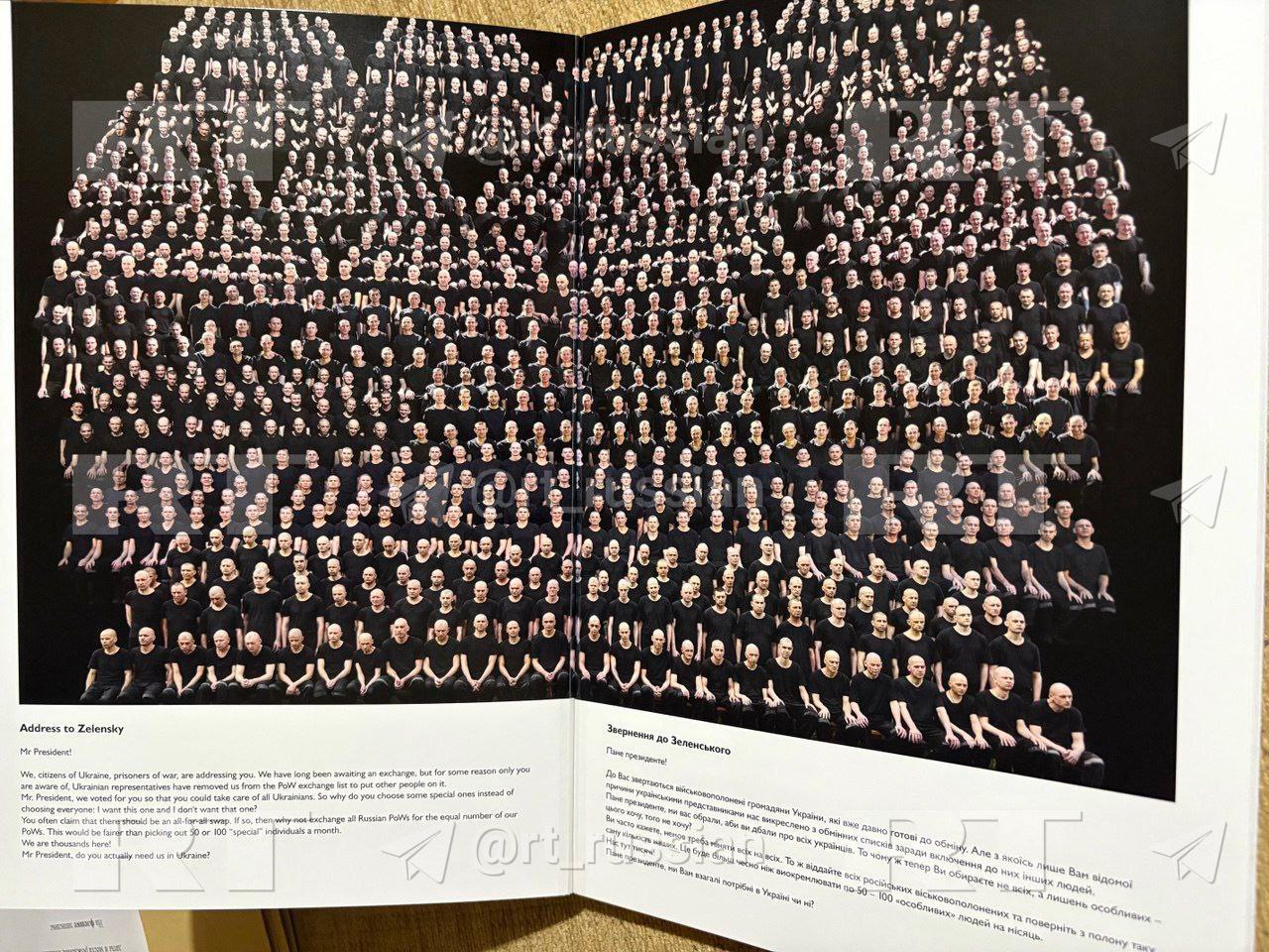 «Президент России Владимир Путин на встрече с президентом США Дональдом Трампом лично передал ему книгу с фото и петицией 1000 военнопленных, которых Киев отказывается забирать», — комментирует скрины и кадры со страницами издания RT.