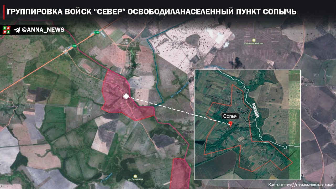 В результате боевых действий российским войскам при поддержке своих операторов БПЛА, артиллерии и авиации удалось выбить подразделения 104-й отдельной бригады территориальной обороны ВСУ с данного населенного пункта. Освобождение Сопычей является продолжением операции ВС РФ по созданию буферной зоны на границе с Украиной и, в частности, усиливает безопасность находящегося в данном районе города Рыльск Курской области.