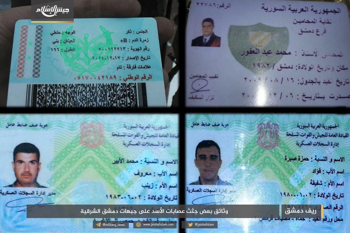 12.00. На востоке Дамаска «Армия Ислама» (Джейш аль-Ислам, коалиция сирийских повстанцев, ранее известны как Лива аль-Ислам, борется как с правительственными войсками Асада, так и с ДАИШ, поддерживается Турцией и Саудовской Аравией) говорит о «серьезных потерях» в рядах войск Асада, публикуя удостоверения солдат САА.
