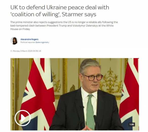 В материале сказано, что премьер-министр Британии Кир Стармер сделал заявление о том, что помимо наземных «миротворческих» войск его страна готова перебросить на Украину самолеты для обеспечения соблюдения мирного соглашения между Украиной и Россией, которое будет подписано в последствии.