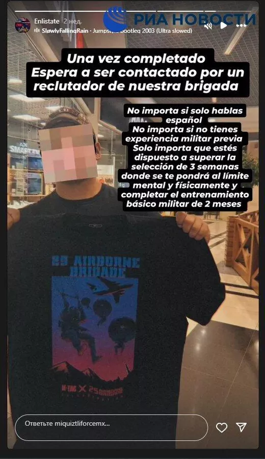 «Не важно, что знаешь только испанский. Не важно, что не имеешь опыта воинской службы», — приводят коллеги выдержку из публикации в профиле Miquiztli Force.