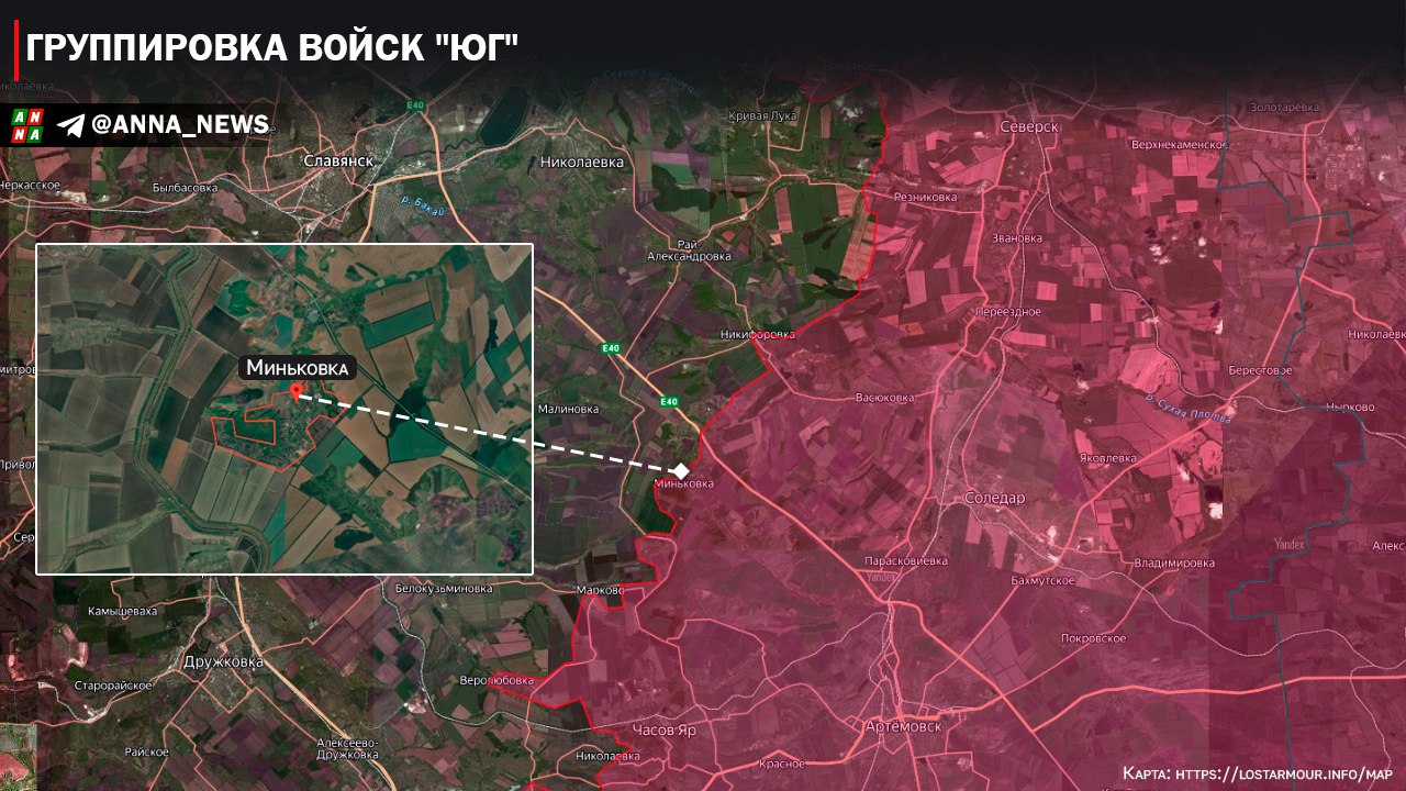 Основные боевые действия ГрВ «Юг» продолжаются восточнее Славянска и Краматорска. Подразделения ВС РФ на данном направлении смогли освободить населенный пункт Миньковка, что позволяет как наступать по трассе Е40 в сторону Славянска, так и выйти к каналу Северский Донец-Донбасс. Стоит отметить, что постепенно продвижение ВС РФ к Краматорску на данном направлении позволили операторам БПЛА российской армии начать активную охоту на подразделения ВСУ находящимся в самом населенном пункте.