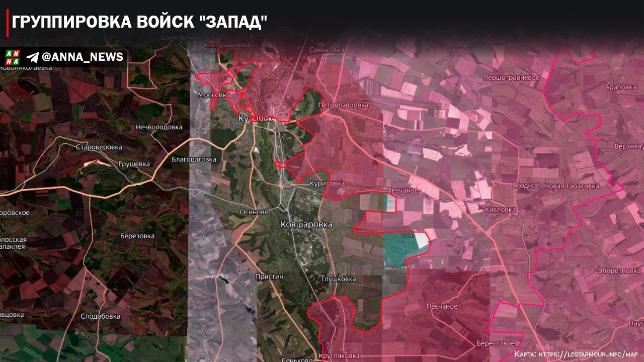 Основные боевые действия ГрВ «Запад» продолжаются у Купянска. Российские войска осуществляют мероприятия по отражению контрударов ВСУ и ликвидации плацдарма украинской армии на восточном берегу реки Оскол. По данным западных осинтеров ВС РФ значительно нарастили удары авиации и артиллерии по данному участку фронта, что говорит о желании как можно скорее вытеснить ВСУ с этой территории.