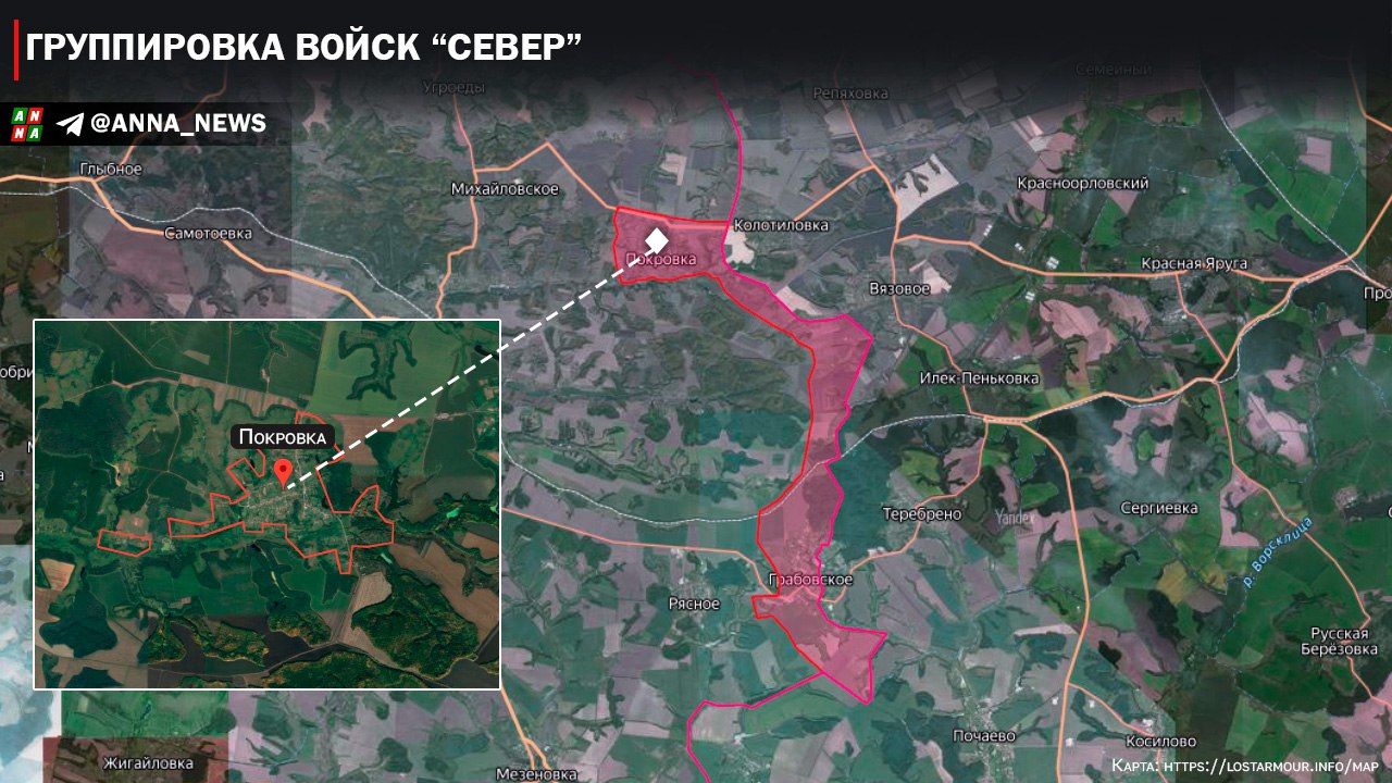 Помимо этого штурмовые подразделения ВС РФ наступают западнее Родинского. Так продвижение российской пехоты было замечено у шахты номер 2 «Водянская». Судя по всему российское командование будет пытаться вытеснить ВСУ из южных подступов к городу Доброполье, для возможности последующего охвата и штурма этого населенного пункта.