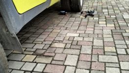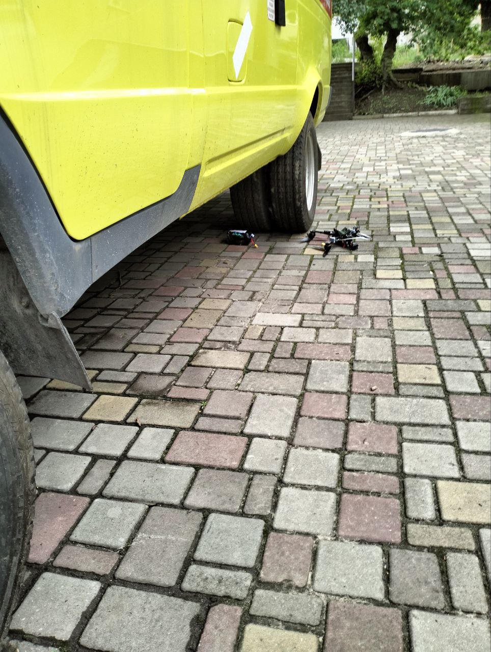 Беспилотник зацепился за ветки и упал рядом с одним из автомобилей скорой. Взрывное устройство не сдетонировало.