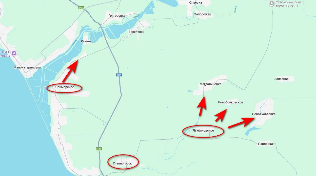 16:45 Штурмовым подразделениям группировки «Днепр» удалось продвинуться в северной части населенного пункта Приморское Запорожской области, прорвав оборону противника в северной части поселка