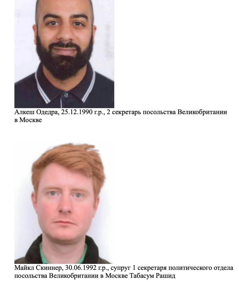 По данным ведомства, второй секретарь дипмиссии Алкеш Одедра и супруг первого секретаря политотдела Майкл Скиннер занимались «разведывательно-подрывной деятельностью, угрожающей безопасности России».