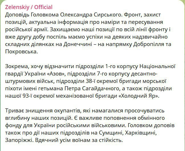 Об этом заявил Зеленский по итогам встречи с главкомом ВСУ Сырским.