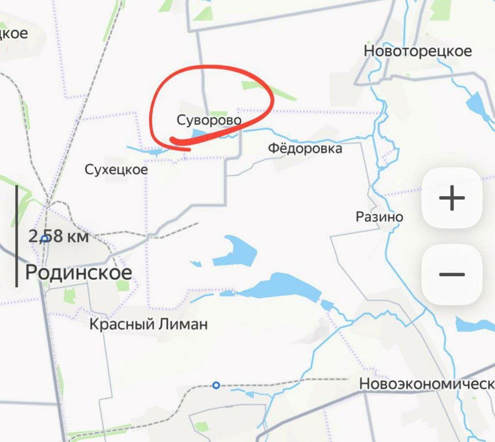 14:45 ВСУ под натиском ВС России отступают из села Суворово к опорникам в районе Никоноровки