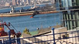 17:30 Над местом уничтожения украинского безэкипажного катера, который пытался прорваться к российским кораблям в Новороссийске, поднимается столб дыма