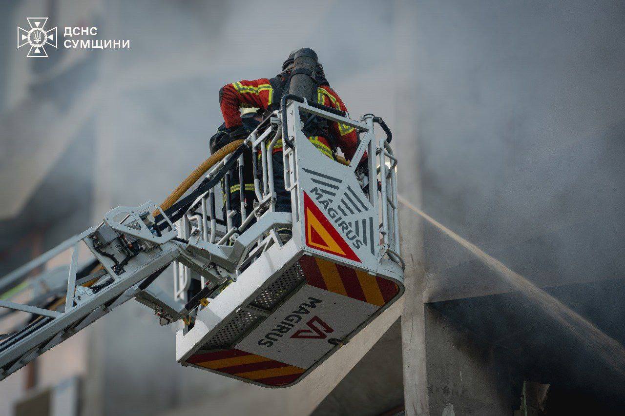 В Сумах прилетело в некое «административное здание», где немедленно возник пожар.