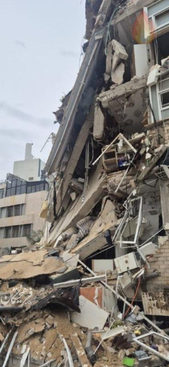 Обрушение четырёхэтажного здания в Тель-Авиве в результате ракетных ударов Ирана. По носилкам видно, что есть раненые и, вероятно, погибшие.